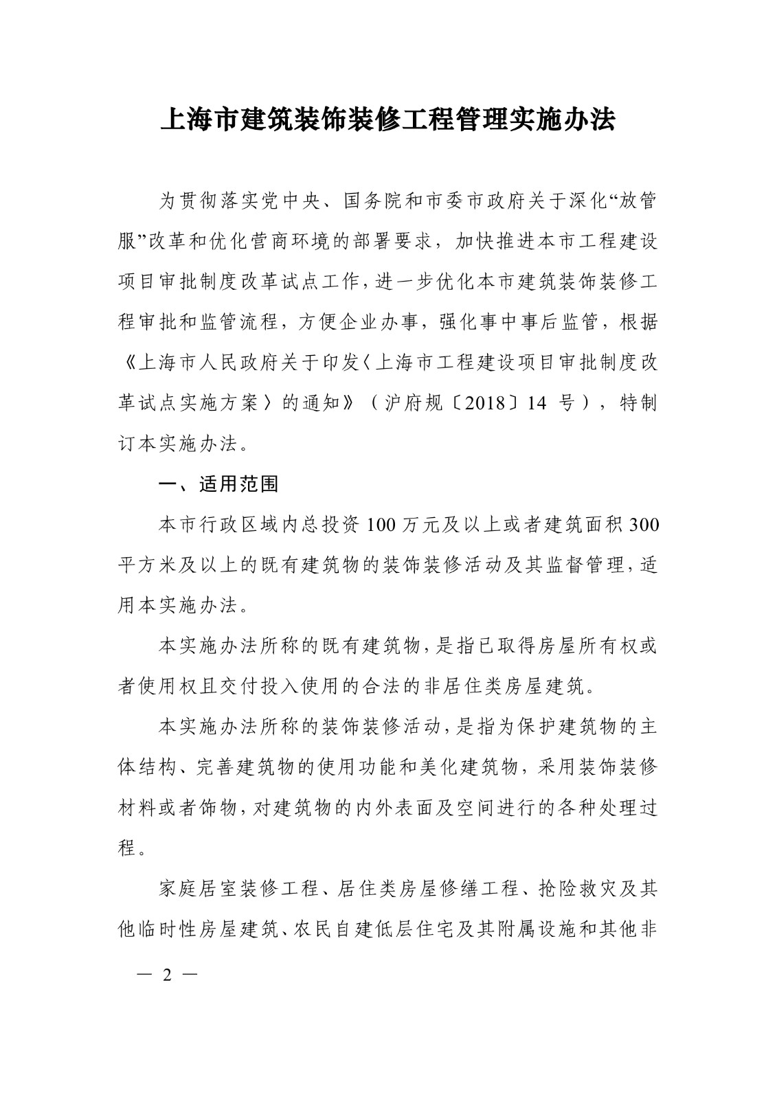 关于印发《上海市建筑装饰装修工程管理实施办法》的通知
