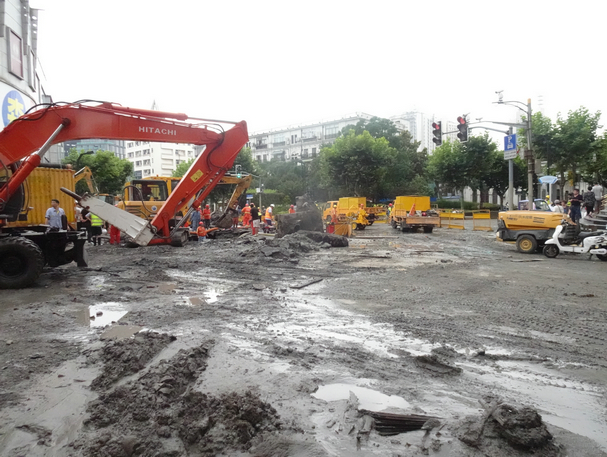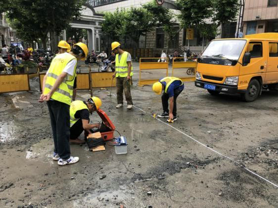 XX路自来水管爆裂,造成地面下方脱空、路面塌陷、邻近区域路面起鼓。受委托,我公司进行应急检测。现场分析出损坏范围,提出处理意见。